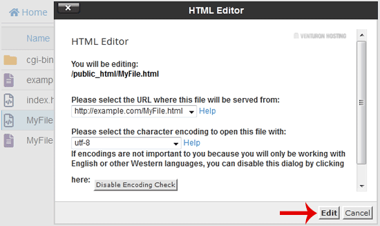 5. Right-click on the file and then on Edit or HTML Edit in the Context Menu.