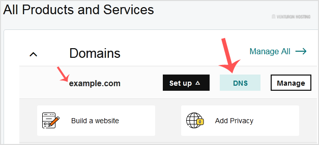 3. After a successful login, under the Domains section, click on the DNS button next to the domain you wish to manage.