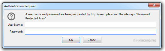 Now, should you try to open your password-protected directory in your browser through the URL www.example.com/myfolder, which is already password protected, your browser will prompt you to enter username and password.