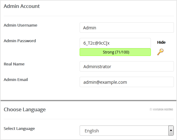 • Admin Email: Your e-mail address. (Useful for administrator account password reset, notification, etc.)