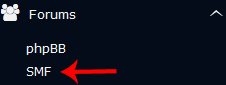 4. On the left side of your screen, you should locate the Forums category. Click on it and then click on the SMF link that will appear.