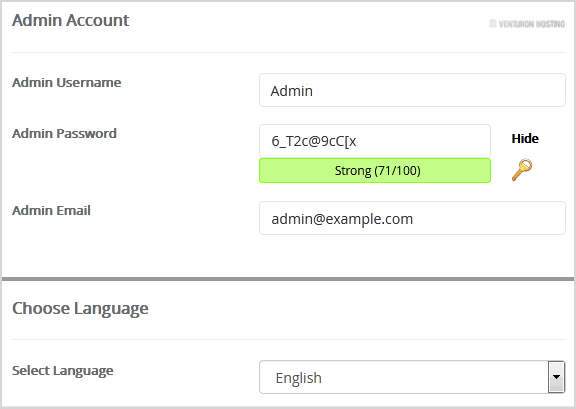 • Admin Username: Your new MyBB username (for security reason do not use the Administrator or the Admin username.)