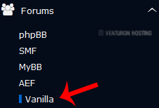 4. On the left side of your screen, you should locate the Forums category. Click on it and then click on the Vanilla link that will appear.