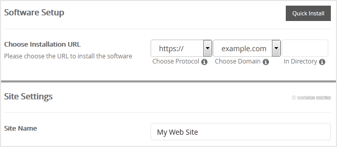• Choose Installation URL: Choose the appropriate protocol/domain. Inside the "In Directory" field, should you want to install this in a directory, i.e. example.com/directory, enter the directory name. Otherwise, leave it blank to install in your main domain, i.e. example.com