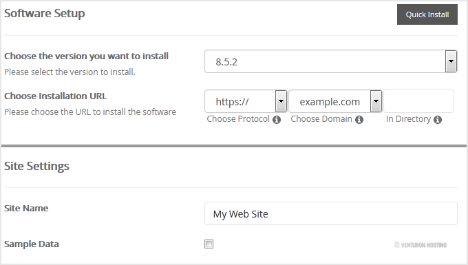 - Choose Installation URL: Choose the appropriate protocol/domain. Inside the "In Directory" field, should you want to install this in a directory, i.e. example.com/directory, enter the directory name. Otherwise, leave it blank to install in your main domain, i.e. example.com