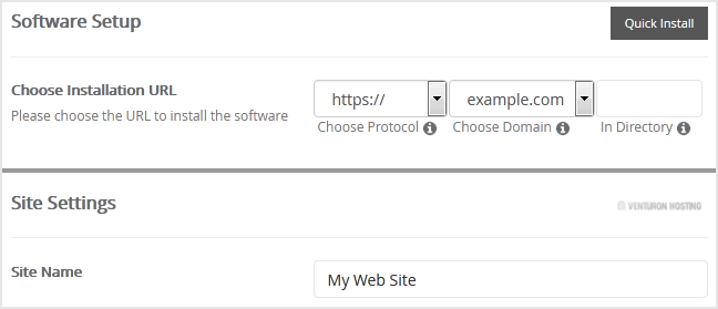 - Choose Installation URL: Choose the appropriate protocol/domain. Inside the "In Directory" field, should you want to install this in a directory, i.e. example.com/directory, enter the directory name. Otherwise, leave it blank to install in your main domain, i.e. example.com