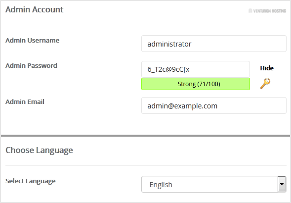 - Admin Username: Your new MODX username (for security reason do not use the Administrator or the Admin username.)