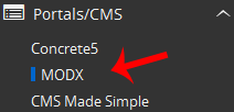 4. On the left side of your screen, you should locate the Portal/CMS category. Click on it and then click on the MODX link that will appear.