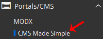 4. On the left side of your screen, you should locate the Portal/CMS category. Click on it and then click on the CMS Made Simple link that will appear.