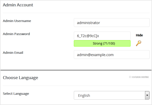- Admin Username: Your new Plikli CMS username (for security reason do not use the Administrator or the Admin username.)