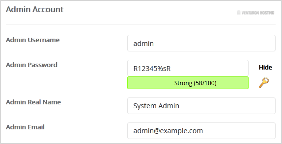 - Admin Real Name: Leave this as it is or use your full name.