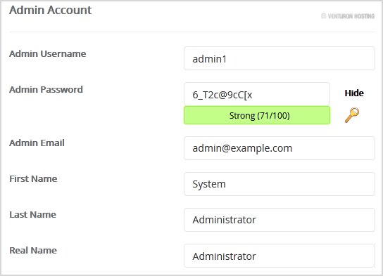 • Admin Username: Your new GRAV username (for security reason do not use the Administrator or the Admin username.)