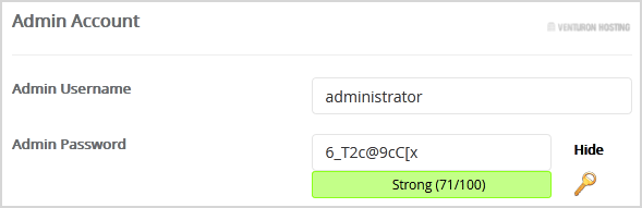 • Admin Username: Your new Pimcore username (for security reason do not use the Administrator or the Admin username.)
