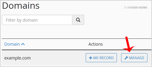 4. Click on Manage, and the DNS records will be loaded on-page.