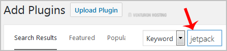 3. In the Search Plugin box, enter the name of the plugin you wish to install, such as Jetpack, and press enter.