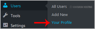 2. Under the dashboard menu, hover your mouse over Users and then click on Your Profile.