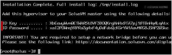 Step 3: Once it completes, it will show you the Slave keys and further instructions for your virtualization type. Now you can use these keys to add a node in your SolusVM Master panel. You will need a SolusVM Slave license for each node.